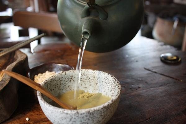 擂茶超複雜的 先要擂碎茶葉 花生 芝麻 還不是碎了就可以 要擂道出油 香氣四溢才行喔