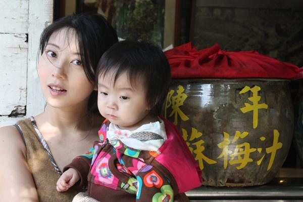最後在我跟老公決定去喝擂茶時 沉沉睡去 就算老公擂的咚咚響 我家寶貝還是不客氣的在桌上睡成一長條 可愛的不得了戴太陽眼鏡