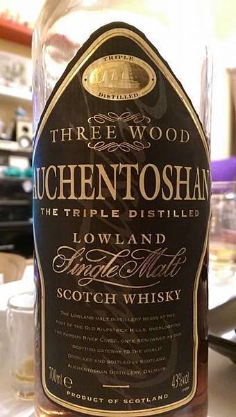 - AHCHENTOSHAN Three Wood:來自Oloroso Sherry桶的濃郁的煙硝味非常明顯,後味則有淡淡的蜜餞。
