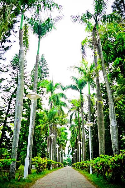 曾經這條椰林道通往美麗的噴水池,現在則成為寬闊的草地以及地景舞台。沿著散步路徑,許多的植栽花叢圍繞四周,每到花季總是色彩繽紛,是台南公園必訪景點。
