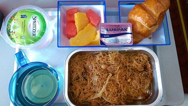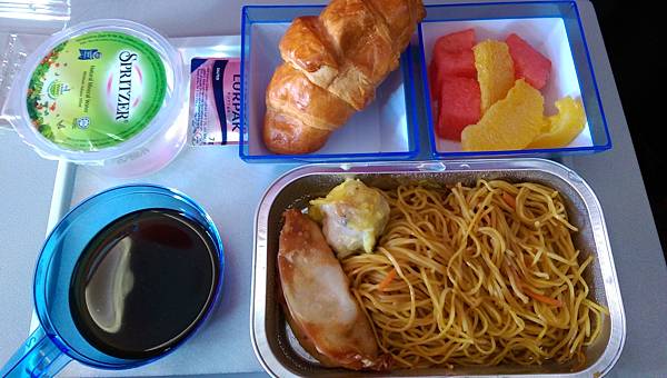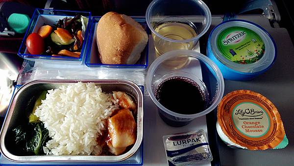 接下來,空服員馬不停蹄地開始送餐~(整個覺得空姐好累,才上飛機不到一小時已經派發三種不同的東西啦!)