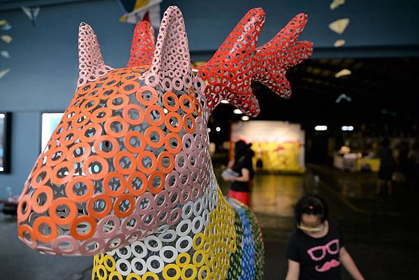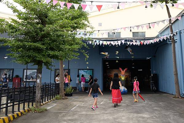 繞著倉庫走一走,現在已經將閒置不用的空間改裝成有點心餐車、親子互動遊戲區的展館,工作人員帶著許多孩子進行表演前的前導活動,氣氛熱鬧又歡欣,把鐵倉庫剛硬的氣氛軟化了不少。