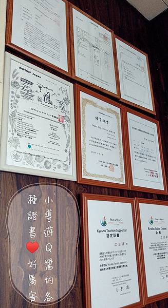 Q醬好厲害,有好多證照,一個台灣女生可以在短短幾年內精通日文+取得九州官方認證的優良導遊身分,真的很不容易,可以想見她有多認真努力,這也是翼宿客人的幸福,因為女主人本身精通九州的旅遊,可以提供很多很棒的旅行建議喔!
