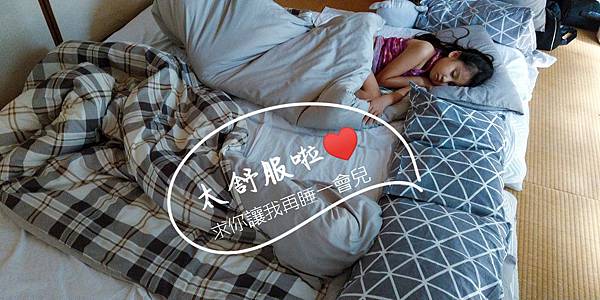 這夜有點累,沒有拍太多房間的美照,後來房間又被我們堆滿行李雜物導致不能拍~~嗚嗚,沒圖沒真相,無法證明房間有多可愛,只好補上女兒睡翻叫不醒的照片+窗外的海港美景囉!