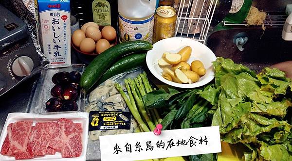 第一夜,農夫超市採購糸島產的和牛、牡蠣,搭配新鮮雞蛋蔬果,