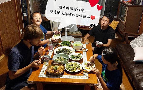 因為是親手在土地上有機種植,蔬菜充滿了大地的氣息,風味濃厚、咬感鮮脆,這一夜滿桌的蔬菜慰藉了我們在日本許久未曾大吃蔬菜的空虛,