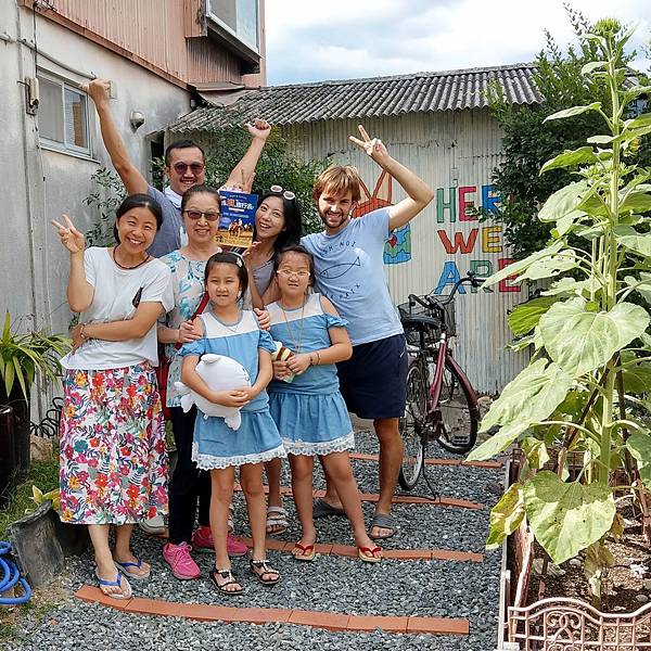 迎接我們的陣仗非常厲害!除了學妹本身,還有她的老公岡健太郎、此刻的駐村藝術家北藝大學弟,再加上一位法國來此打工度假的小帥哥~