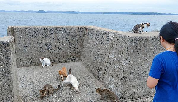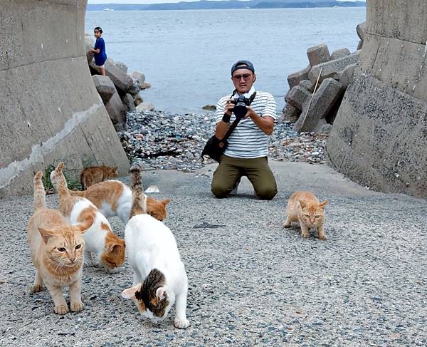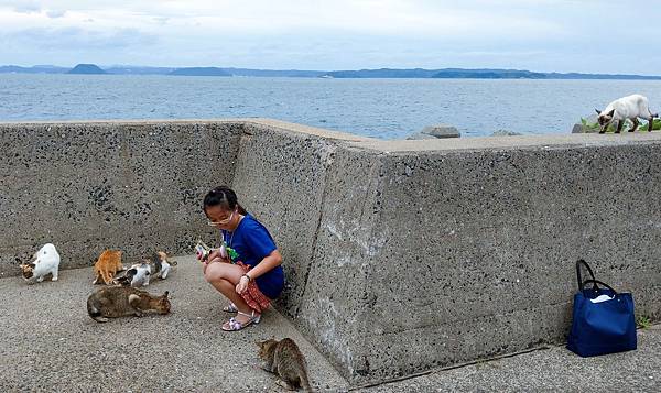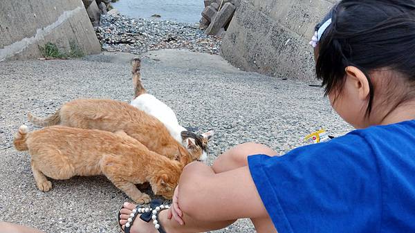 女兒和我興奮的尖叫不已,那個和藹的老奶奶,就這樣站在旁邊,含笑的看著我們餵貓,差不多十幾二十分鐘後,我提醒女兒,要準備回去搭船了,女兒收起貓食,老奶奶意識到我們準備離開,才轉身離去。