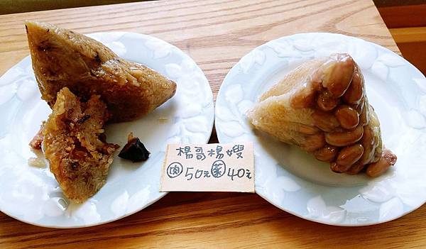 生意是三家店中最好的,價錢也是最貴,肉粽50元,月桃葉菜粽40元,覺得吃個粽子要五十元實在不太划算。