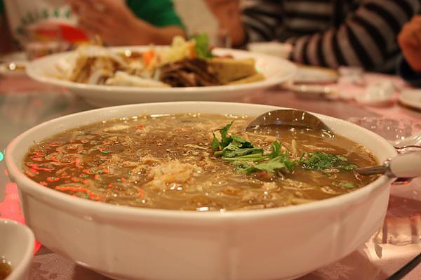 第三道魚翅羹我好滿意 恰到好處的調味濃而不膩 料多口味眾卻不覺得負擔過多無法入口 左一些紅醋真是搭到不行
