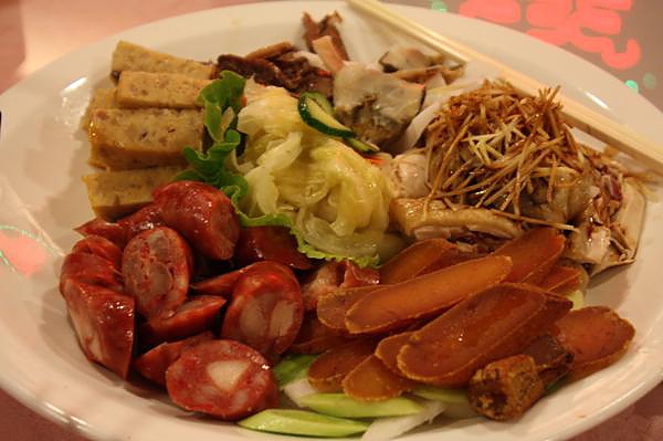 裡面有烏魚子 涼拌豬心 五味章魚 薑絲雞肉 一種不知名的好吃海鮮蒸蛋 還有阿霞最有名的香腸熟肉