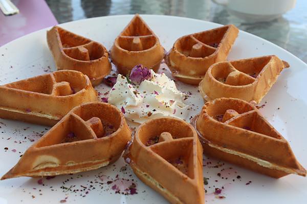 玫瑰鬆餅是鮮奶做的 酥脆的奶香頂好 鮮奶茶跟咖啡就普通