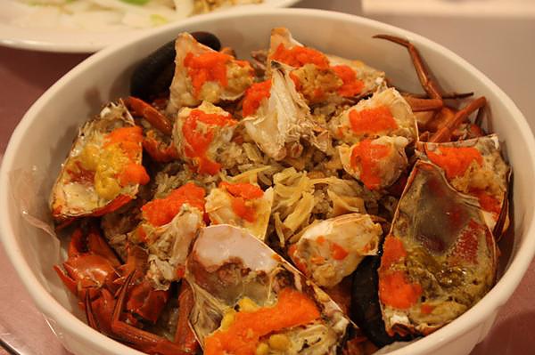螃蟹未免太多了 紅通通的蛋吃得我快笑了